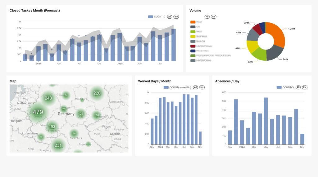 OMD Powerhouse lays the foundation for advanced AI capabilities specifically developed for the service industry to comprehensively analyze and improve service processes. Among other things, the platform enables: