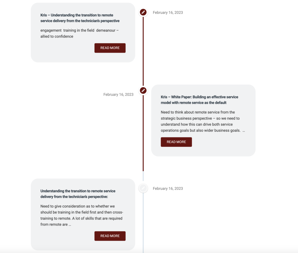 By having to commit their comments to the timeline before the next meeting is in place, this gently ensures that your team members will not let their monthly knowledge hub resource slip through the cracks.